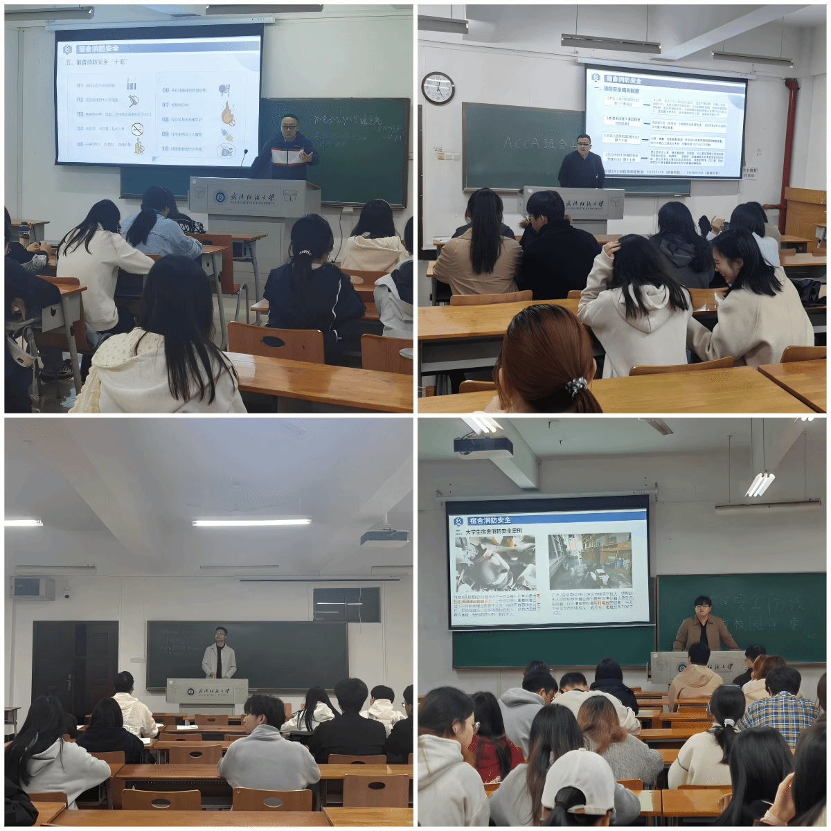 会后各辅导员组织所带班级学生召开宿舍消防安全主题班会,辅导员结合宿舍安全典型案例,深入剖析消防安全隐患的危害,详细讲解大功率电器禁用规定、用电安全规范、灭火器使用方法及火灾逃生自救技巧等内容,再次学习《管理学院安全事项提醒告知书》。