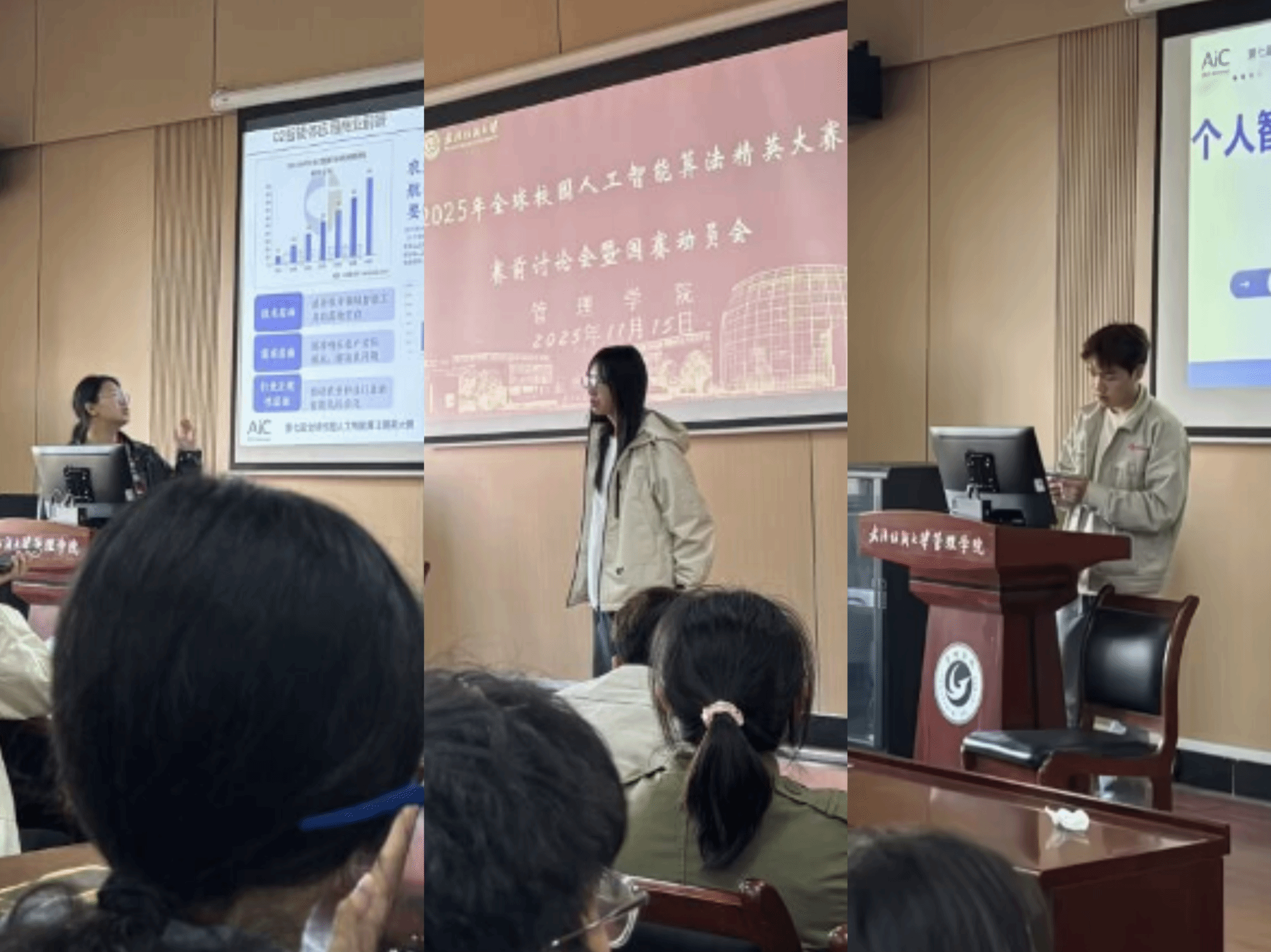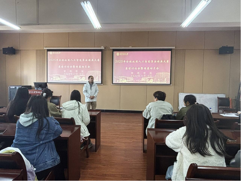 11月15日,管理学院组织召开2025年全球校园人工智能算法精英大赛赛前讨论会暨动员大会。执行院长吴金红、指导教师倪成章与参赛团队面对面交流,围绕项目优化、技术细节与展示策略进行深入指导,为即将出征的选手们答疑、指导。