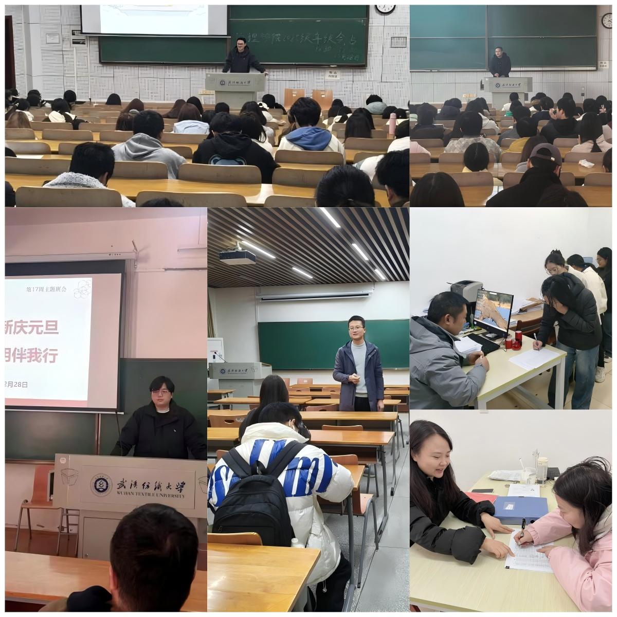 12月28日下午,管理学院各班级开展“辞旧迎新庆元旦 安全文明伴我行”晚点名班会,引导学生明晰时事政策,强化安全意识,由班主任和辅导员主持。