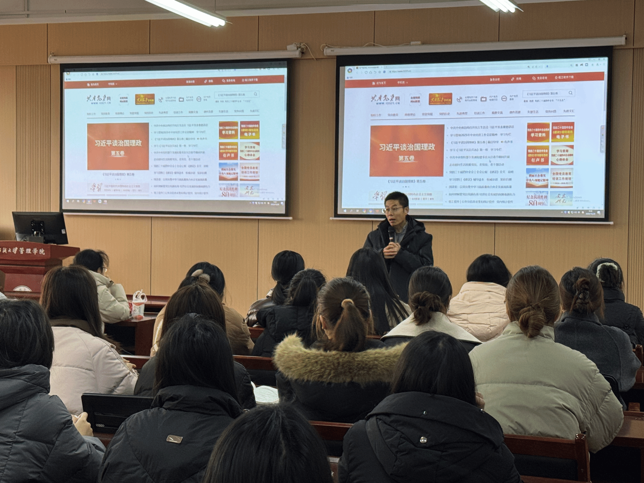 为深入学习贯彻党的二十届四中全会精神,进一步提升学生党员的理论素养与使命担当,12月29日,管理学院举办“书记开讲啦”专题宣讲活动。学院党委书记赵立彬出席并作主题宣讲,学院学生党员代表参加本次学习会。学院党委副书记、副院长耿迪主持活动。