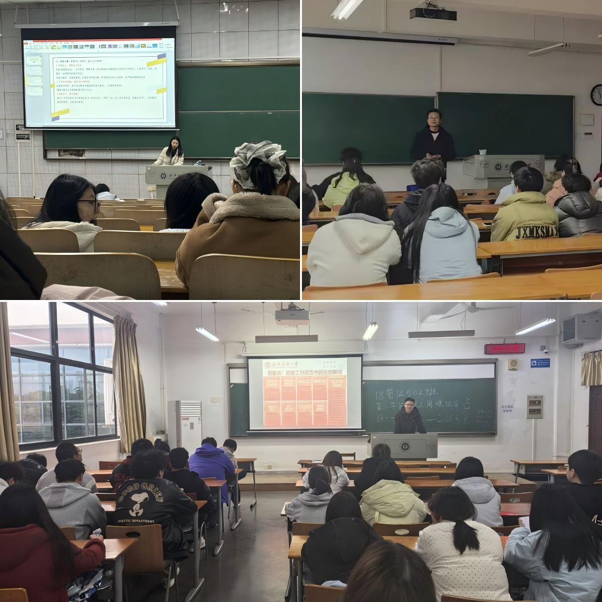 3月8日下午,管理学院举行“聚焦两会明方向,挺膺担当向未来”主题班会,围绕2026年全国两会精神进行宣讲,并结合大三、大四不同阶段学生的实际需求,开展分类指导与精准帮扶。班会由班主任和辅导员主持。