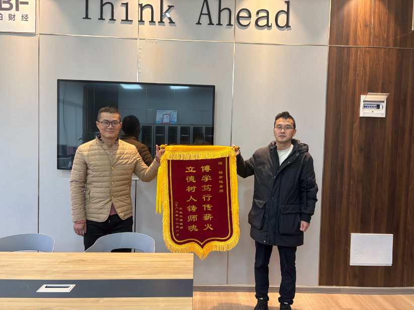 接下来,王稀同学将“博学笃行传薪火,立德树人筑师魂”的锦旗郑重交到杨金键老师手中。锦旗上的鎏金大字,映照出一段跨越十年的师生情谊。