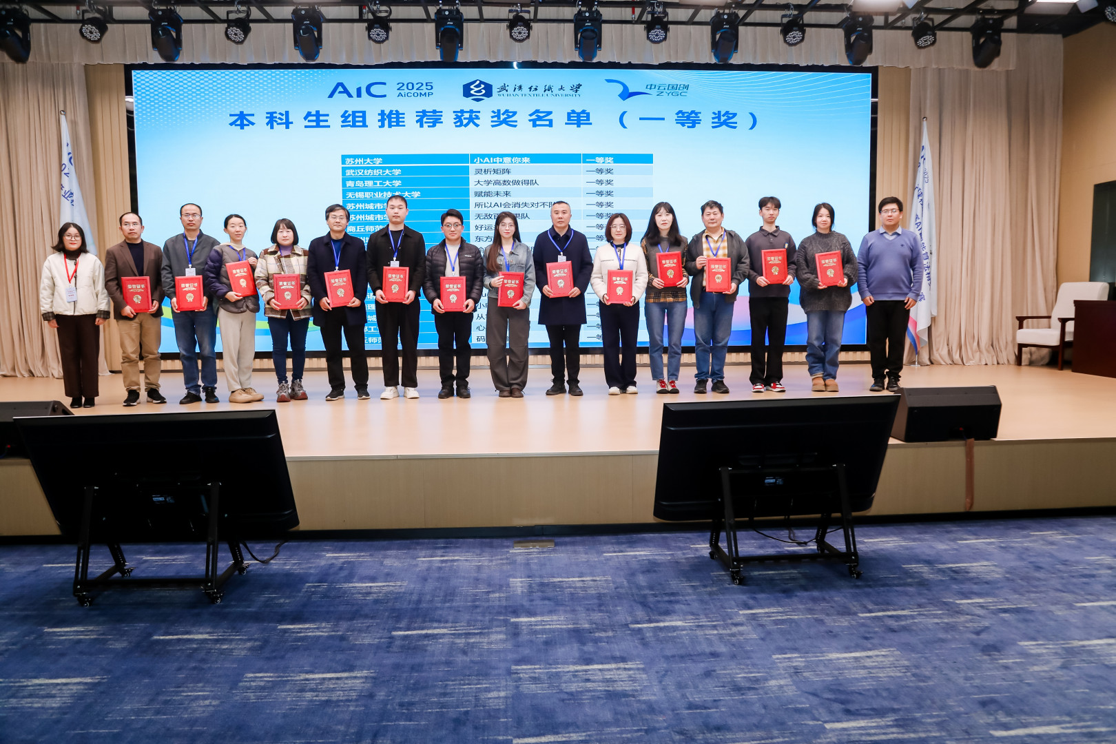 23日,闭幕式在庄严热烈的氛围中拉开帷幕,武汉纺织大学领导代表致感谢辞,对大赛组委会、裁判团队、指导教师及参赛选手的辛勤付出表示高度认可,并强调赛事对促进人工智能教育创新和产教协同的深远意义。经过激烈的角逐,最终评出本科组国家级一等奖16项、二等奖26项、三等奖35项;研究生组一等奖1项、二等奖3项、三等奖3项和专科组一等奖2项和二等奖4项、三等奖 5项。