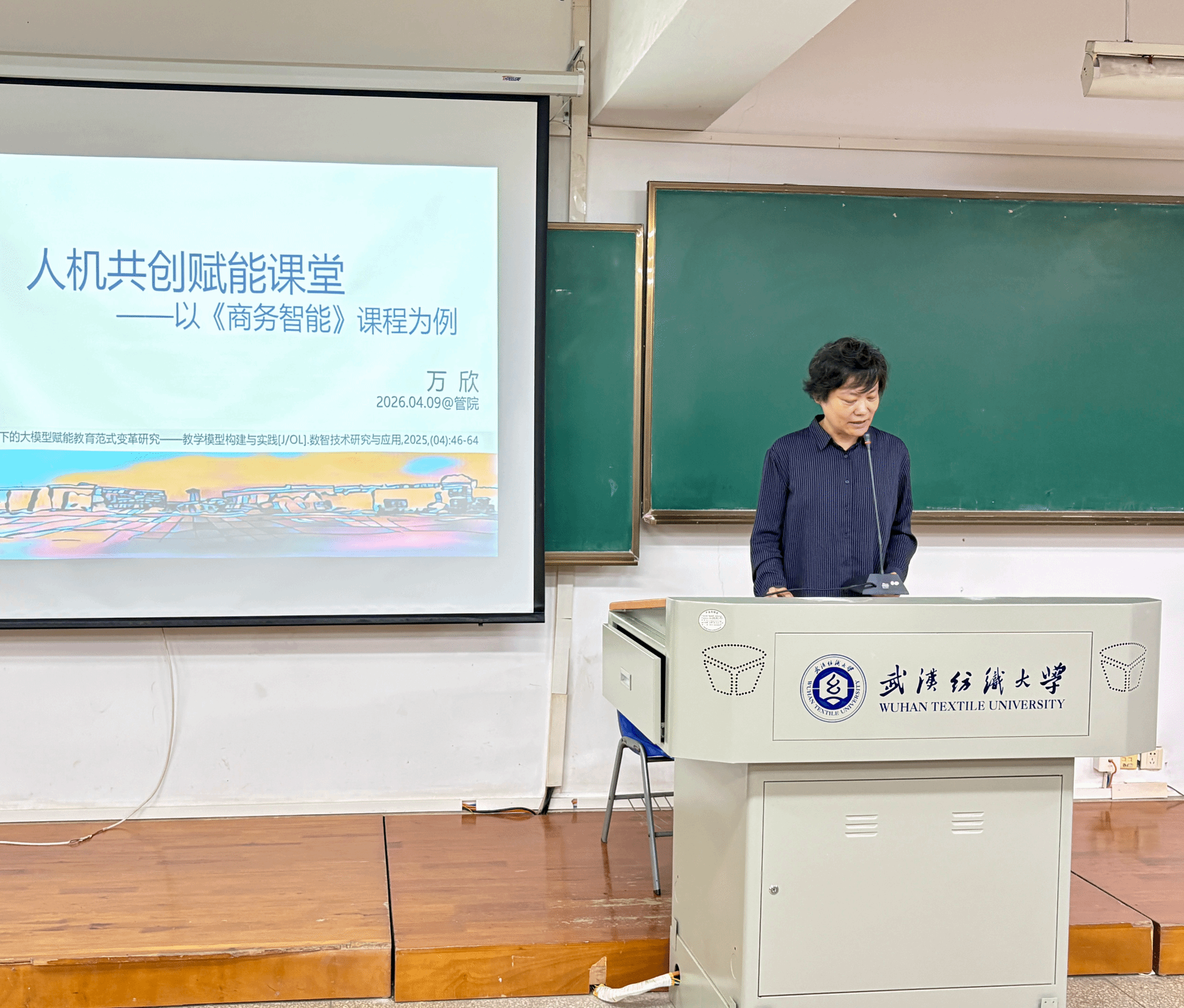 会议还邀请副教授万欣作题为《人机共创赋能课堂——以〈商务智能〉课程为例》的专题报告,从人机协同教学生态、教学特点及课堂应用场景等方面进行了分享,为推进课堂教学创新提供了有益借鉴。